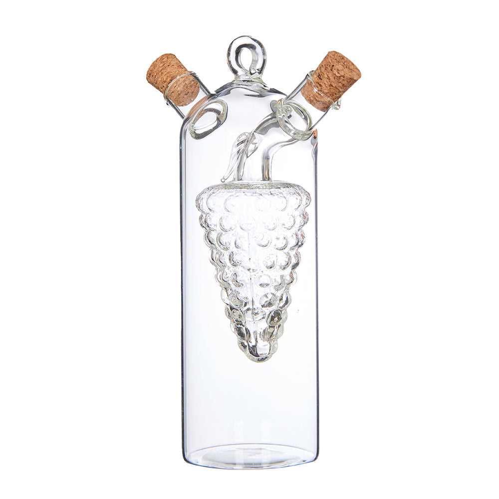 Two bottles in one eye-catching vessel. Our glass cruet holds both oil and vinegar. Simply fill the outer bottle with your favorite oil and the inner bottle with vinegar.